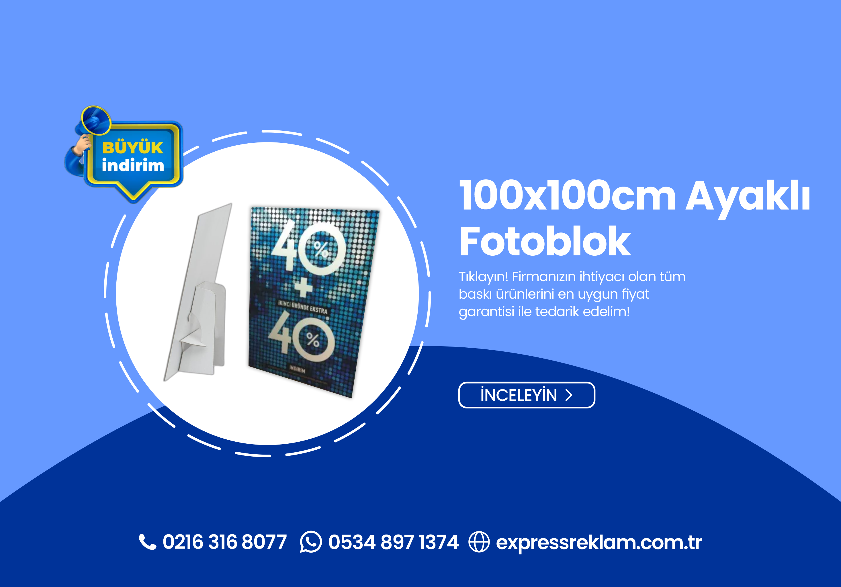 Karton ayaklı fotoblok dijital baskı alınan etiket (sticker) üzerine yapıştırılarak, reklam tanıtım yönlendirme ve etkinliklerde kullanılmaktadır. Arkasına karton ayak takılarak hafif 3 - 5mm fotobloktan yapılan en uygun tanıtım araçlarındandır. Karton Ayaklı Fotoblok Karton ayaklı fotoblok konusunda uzun yıllar üretim yapan firmamız ister bir ister bin adet olsun, aynı kalite…